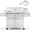 Wyposażony w cztery palniki główne, strefę Sear Station zapewniającą intensywne ciepło do szybkiego przypiekania potraw oraz boczny palnik do przygotowywania dodatków.