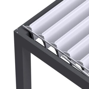 Pergola bioklimatyczna Génova przyścienna – 4,06 × 3,12 m, kolor szary z białymi lamelami
